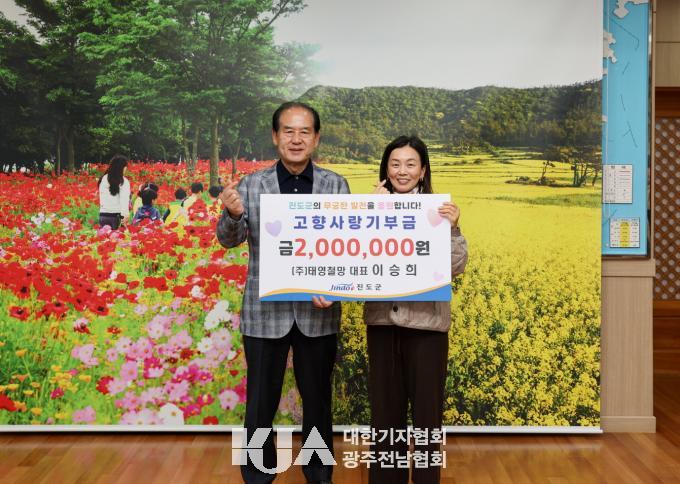 [´ëÇѱâÀÚÇùȸ Áøµµ±ºÁöȸ ¹Ú¿ëÁØ ±âÀÚ] Áøµµ±º¿¡ ¼ÒÀçÇÏ´Â ¢ßÅ¿µÃ¶¸ÁÀÇ À̽ÂÈñ ´ëÇ¥´Â Áö³ 3¿ù 30ÀÏ Áøµµ±ºÃ»À» ¹æ¹®ÇØ, Áö¿ª ¹ßÀü°ú ±º¹ÎÀÇ º¹¸® ÁõÁøÀ» À§ÇØ °íÇâ»ç¶û±âºÎ±Ý 200¸¸ ¿øÀ» ±âºÎ Çß´Ù.