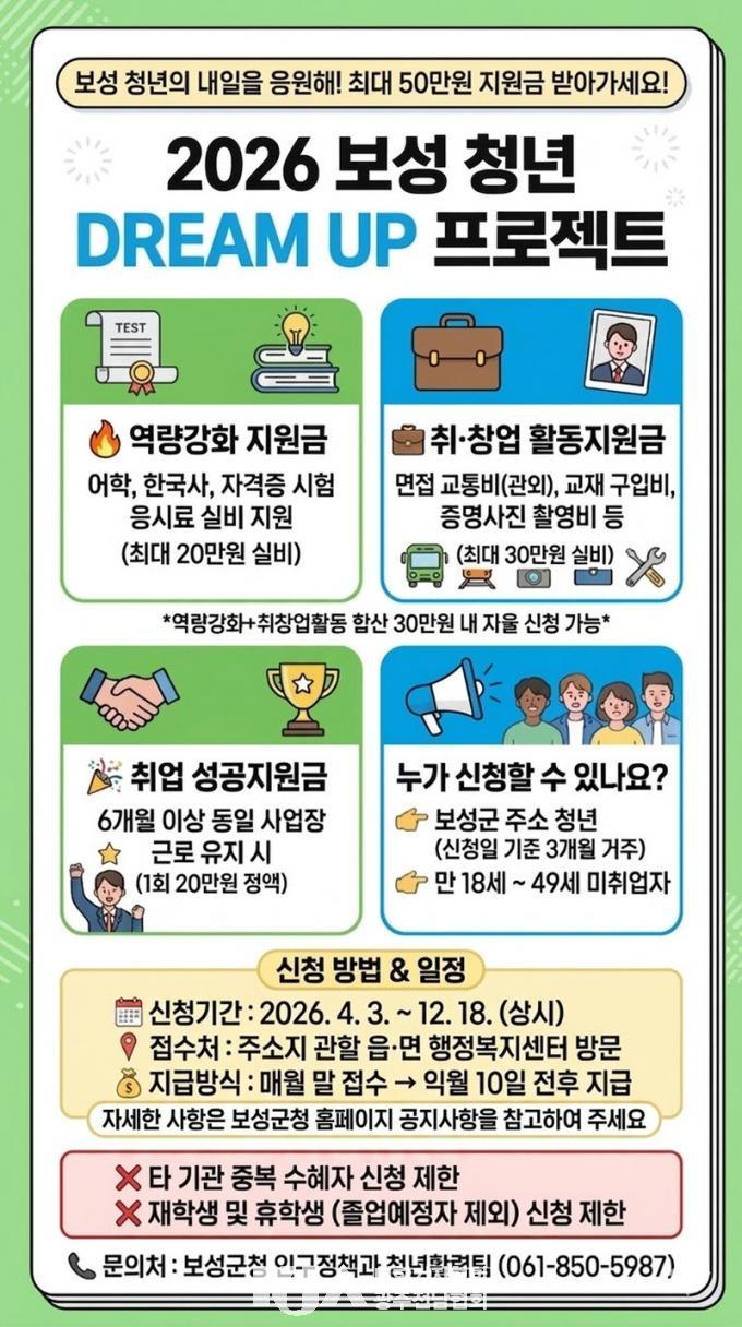 | º¸¼º±º, 2026³â û³â DREAM UP ÇÁ·ÎÁ§Æ® ÃßÁø °íÇâ»ç¶û±â±Ý 6õ¸¸ ¿ø ÅõÀÔ, ÃâÇâ¹ÎÀÇ ¿Â±â·Î û³âÀÇ ²Þ Æ·¿î´Ù! |