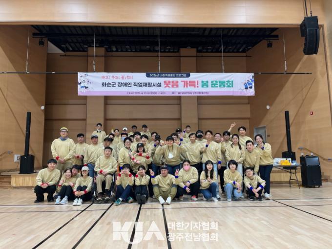¡®¿ôÀ½ °¡µæ º½ ¿îµ¿È¸¡¯¸¦ ÁÖÁ¦·Î ¿¸° À̹ø Çà»ç´Â Á÷¿ø °£ ÈÇÕÀ» µµ¸ðÇϰí Àå¾ÖÀÎÀÇ »çȸ ÀûÀÀÀ» Áö¿øÇϱâ À§ÇØ ¸¶·ÃµÆ´Ù. À̳¯ Çà»ç¿¡´Â ÀÌ¿ë Àå¾ÖÀÎ 32¸íÀ» Æ÷ÇÔÇØ Á¾»çÀÚ µî 45¸íÀÌ Âü¿©Çß´Ù.
