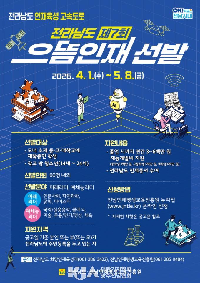 [´ëÇѱâÀÚÇùȸ ±¤ÁÖÀü³²Çùȸ] Àü¶ó³²µµ°¡ ¹Ì·¡ ÀÎÀ縦 ¹ß±¼¡¤À°¼ºÇϱâ À§ÇØ ¡®Á¦7ȸ Àü¶ó³²µµ À¸¶äÀÎÀç ¼±¹ß¡¯ Âü¿©ÀÚ¸¦ °ø°³ ¸ðÁýÇØ 60¸í¿¡°Ô ÃÖ´ë 600¸¸ ¿øÀ» Áö¿øÇÑ´Ù.