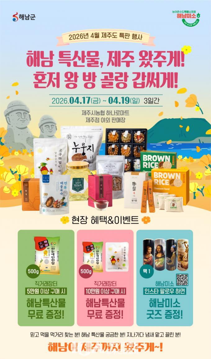 [´ëÇѱâÀÚÇùȸ ÇØ³²±ºÁöȸ ¹Ú±¤ÀÏ ±âÀÚ] ÇØ³²±ºÀº ¹Ù´Ù °Ç³Ê Á¦ÁÖ ¼ÒºñÀÚ¸¦ ã¾Æ ¿À´Â 17ÀϺÎÅÍ 19ÀÏ, 3Àϰ£ Á¦ÁֽóóÇù Çϳª·Î¸¶Æ® Á¦ÁÖÁ¡ ¾ß¿ÜƯ¼³¸ÅÀå¿¡¼­ ³ó¼öƯ»ê¹° Á÷°Å·¡ÀåÅ͸¦ ¿î¿µÇÑ´Ù.