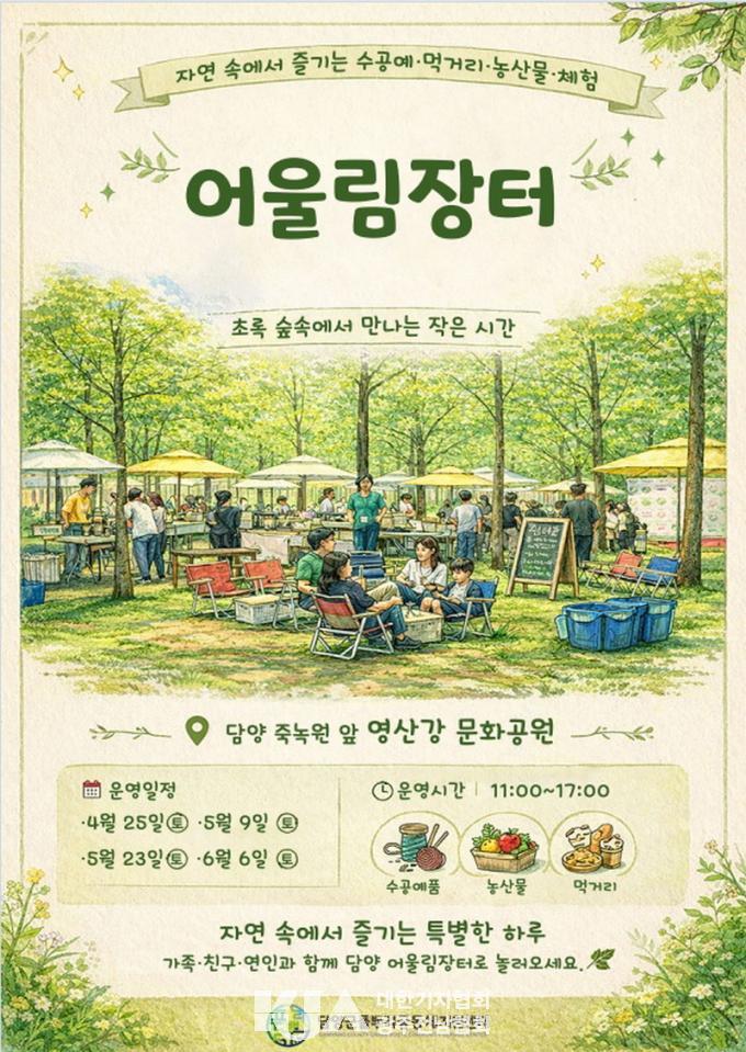 [´ëÇѱâÀÚÇùȸ ´ã¾ç±ºÁöȸ Ź»óÈÆ ±âÀÚ] ´ã¾ç±º Ç®»Ñ¸®°øµ¿Ã¼Áö¿ø¼¾ÅͰ¡ Áö¿ª °øµ¿Ã¼¿Í ¼Ò»ó°øÀÎÀÇ »ó»ýÀ» µ½°í Áö¿ª °æÁ¦¸¦ »ì¸®±â À§ÇÑ ¡®2026³â ¾î¿ï¸²ÀåÅÍ¡¯¸¦ ¿À´Â 6¿ù±îÁö ÃÑ 4ȸ ¿î¿µÇÑ´Ù.