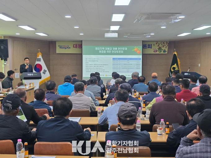 ±ºÀº Áö³­ 23ÀÏ ±ÝÁ¤³óÇù ȸÀǽǿ¡¼­ Àü¶ó³²µµ »ê¸²ÀÚ¿ø¿¬±¸¼Ò, °ïÃæÀá¾÷¿¬±¸¼Ò, ±¹¸³»ê¸²°úÇпø, ´ëºÀ°¨ »ý»êÀÚ µî 60¿© ¸íÀÌ Âü¼®ÇÑ °¡¿îµ¥ ¡®´ëºÀ°¨ ¾ÈÁ¤ »ý»êÀ» À§ÇÑ ÇöÀåÅä·Ðȸ¡¯¸¦ °³ÃÖÇß´Ù.