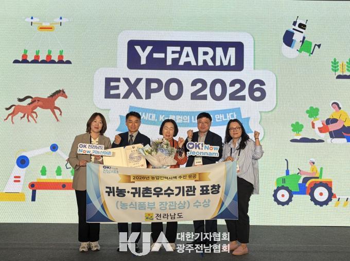[´ëÇѱâÀÚÇùȸ ±¤ÁÖÀü³²Çùȸ] Àü¶ó³²µµ´Â 24ÀÏ ¼ö¿øÄÁº¥¼Ç¼¾ÅÍ¿¡¼ ¿¸° ¡®2026 ¿ÍÀÌÆÊ ¿¢½ºÆ÷(Y-FARM EXPO)¡¯¿¡¼ ³ó¸²Ãà»ê½ÄǰºÎÀÇ ³ó¾÷ÀηÂÀ°¼º½ÃÃ¥ ÃßÁø À¯°øÀÚ Ç¥Ã¢¿¡¼ ±Í³ó¾î±ÍÃÌ ¿ì¼ö½ÃÃ¥ ÃßÁø±â°üÀ¸·Î ¼±Á¤µÅ Àå°ü»óÀ» ¹Þ¾Ò´Ù.