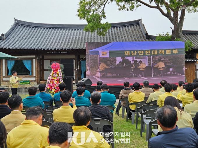 Àü³²µµ¿Í ´ã¾ç±ºÀÌ °øµ¿ ÁÖ°üÇÏ°í ¸¶À» Áֹΰú °æÂû¡¤¼Ò¹æ¡¤±¹À¯¸²°ü¸®¼Ò¡¤»ê¸²Á¶ÇÕ¡¤»ê¸²Àç³¾ÈÀü±â¼ú°ø´Ü, 22°³ ½Ã±º °ü°èÀÚ µî 200¿© ¸íÀÌ Âü¿©ÇØ »ê»çÅ ¹ß»ý »óȲÀ» °¡Á¤ÇÑ ½ÇÀüÇü ÈÆ·ÃÀ¸·Î ÁøÇàµÆ´Ù.