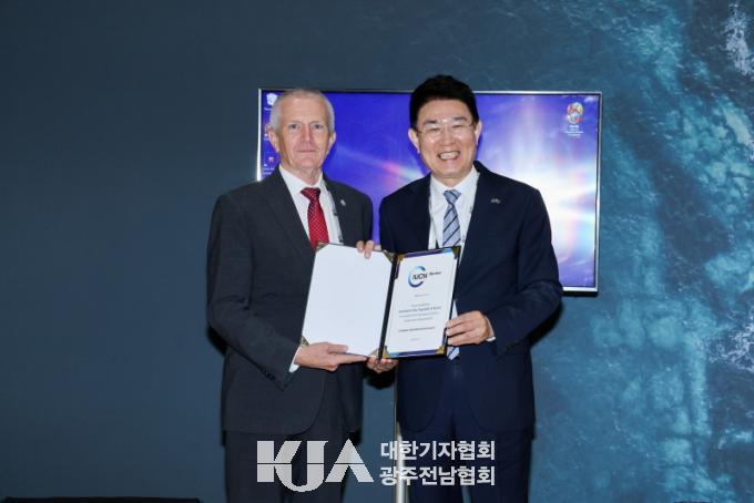| Áö³ 9ÀÏ ¾Æ¶ø¿¡¹Ì¸®Æ® ¾ÆºÎ´Ùºñ¿¡¼ ³ë°ü±Ô ¼øÃµ½ÃÀåÀÌ µòµµ įÇʶõ(Dindo Campilan) IUCN ¾Æ½Ã¾ÆÁö¿ªÃ¥ÀÓÀÚ¿Í ¾çÀÚȸ´ãÀ» °®°í ±â³ä»çÁøÀ» ÃÔ¿µÇϰí ÀÖ´Ù(¿ÞÂʺÎÅÍ Á¤¼±È Á¤ºÎÇù·Â°ü, µòµµ įÇʶõ IUCN ¾Æ½Ã¾ÆÁö¿ªÃ¥ÀÓÀÚ, ³ë°ü±Ô ¼øÃµ½ÃÀå, ȲÅÂÁÖ Àü·«±âȹ±¹Àå) |