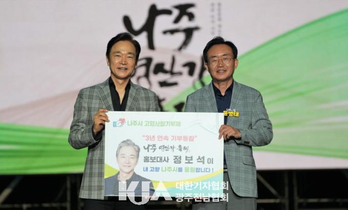 ³ªÁÖ ¹Ý³²¸é Ãâ½ÅÀÎ Á¤º¸¼® ¹è¿ì´Â Áö³ 12ÀÏ ¿µ»ê°Á¤¿ø¿¡¼ ¿¸° 2025 ³ªÁÖ¿µ»ê°ÃàÁ¦ Æó¸·½Ä¿¡¼ À±º´Å ³ªÁÖ½ÃÀå¿¡°Ô ¼º±ÝÀ» ±âŹÇß´Ù. Áö³ 2023³â, 2024³â¿¡ À̾î 3³â° À̾îÁö´Â °íÇâ»ç¶ûÀÌ´Ù.