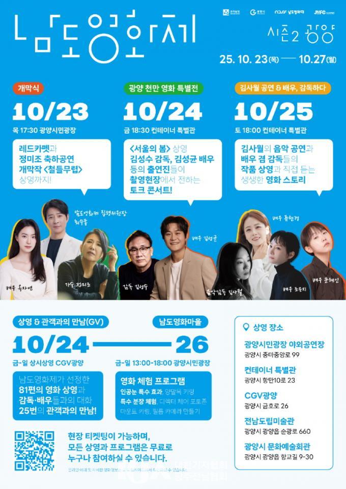 [³²µµ¿µÈÁ¦ ½ÃÁð2 ±¤¾ç]Àº 10¿ù 23ÀÏ(¸ñ)ºÎÅÍ 27ÀÏ(¿ù)±îÁö CGV±¤¾ç, Àü³²µµ¸³¹Ì¼ú°ü, ±¤¾ç½Ã¹®È¿¹¼úȸ°ü, ±¤¾ç½Ã¹Î±¤Àå, ÄÁÅ×ÀÌ³Ê Æ¯º°°ü(½ºÅ¸Àκ¤ÄÚ¸®¾Æ ±¤¾çÇ×) µî ±¤¾ç½Ã ÀÏ´ë¿¡¼ ¿¸°´Ù.