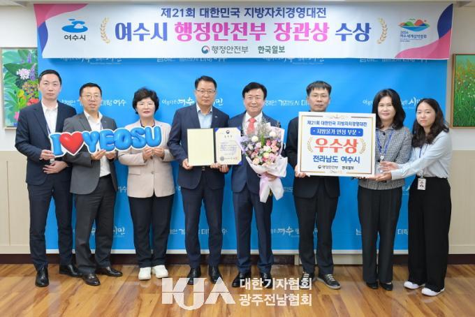 [´ëÇѱâÀÚÇùȸ ¿©¼ö½ÃÁöȸ] ¿©¼ö½Ã(½ÃÀå Á¤±â¸í)°¡ ÇàÁ¤¾ÈÀüºÎ¿Í Çѱ¹ÀϺ¸°¡ °øµ¿À¸·Î ÁÖÃÖÇÑ ¡®Á¦21ȸ ´ëÇѹα¹ Áö¹æÀÚÄ¡°æ¿µ´ëÀü¡¯¿¡¼ ¡®Áö¹æ¹°°¡ ¾ÈÁ¤ ºÐ¾ß¡¯ ¿ì¼ö±â°üÀ¸·Î ¼±Á¤µÅ ÇàÁ¤¾ÈÀüºÎÀå°ü ǥâÀ» ¼ö»óÇß´Ù.