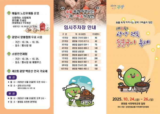 ÃàÁ¦ ù³¯¿¡´Â ½Å¸í³ª´Â ³ó¾Ç ÇѸ¶´çÀ¸·Î ¸·À» ¿Ã¸®°í, ±¤¾ç ¿ø´Ô ÇàÂ÷ ÀçÇö ÆÛ·¹À̵å, ¿ÜÁÙŸ±â °ø¿¬, ±¤¾ç½¡ºÒ¹®È ±âȹ¹«´ë ¡®¹Ìµð¾î ´ëºÏ°ø¿¬¡¯ µî ´Ùä·Î¿î ÇÁ·Î±×·¥ÀÌ À̾îÁø´Ù. ¶ÇÇÑ °³¸·½Ä°ú ÇÔ²² ºÒ²É³îÀÌ¿Í ÃàÇϰø¿¬ÀÌ ÆîÃÄÁö¸ç ÃàÁ¦ÀÇ ¼¸·À» Àå½ÄÇÑ´Ù.
