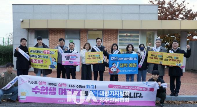 13ÀÏ ³ªÁÖ½Ã(½ÃÀå À±º´ÅÂ)¿¡ µû¸£¸é ¼öÇè»ýµéÀÇ ³ë·ÂÀ» °Ý·ÁÇÏ°í ¾ÈÀüÇÑ ½ÃÇè ȯ°æ Á¶¼ºÀ» À§ÇØ À̳¯ ¿ÀÀü ³ªÁÖ°íµîÇб³¿Í ºÀȲ°íµîÇб³ Á¤¹®¿¡¼ ÀÀ¿ø Çà»ç¸¦ ÁøÇàÇß´Ù.