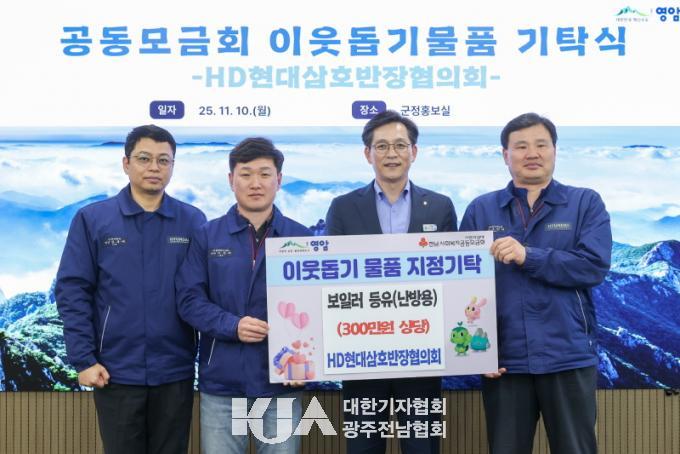10ÀÏ HDÇö´ë»ïÈ£¹ÝÀåÇùÀÇȸ(ȸÀå ÀÌÁ¤Àç)°¡, ¾î·Á¿î ÀÌ¿ôÀÇ °Ç°ÇÏ°í µû¶æÇÑ °Ü¿ï³ª±â¸¦ À§ÇØ ½á´Þ¶ó¸ç 300¸¸¿ø »ó´çÀÇ ³¹æ¿ë º¸ÀÏ·¯ µîÀ¯¸¦ ¿µ¾Ï±º¿¡ Àü´ÞÇß´Ù.
