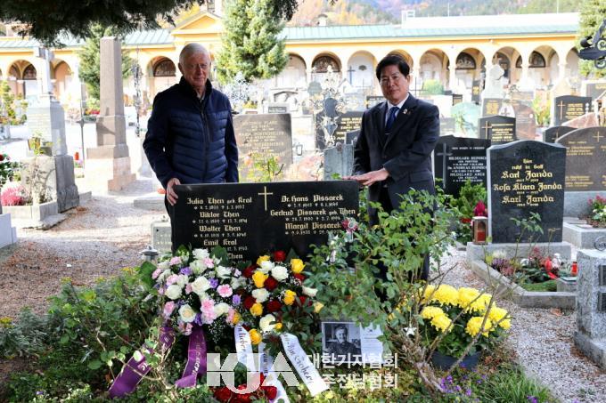 [´ëÇѱâÀÚÇùȸ °íÈﱺÁöȸ ½Å¿ë¿ø±âÀÚ] °íÈﱺ(±º¼ö °ø¿µ¹Î)Àº Áö³ 13ÀÏ, ¼Ò·Ïµµ¿¡¼ 43³â°£ ³ª´®°ú »ç¶ûÀ» ½ÇõÇÑ ¡®¼Ò·ÏµµÀÇ Ãµ»ç¡¯ ¸¶¸®¾È´À ½ºÅð°Å(92¼¼)¿Í °í(ͺ) ¸¶°¡·¿ Çǻ緺ÀÇ °¡Á·, ±×¸®°í ´ç½Ã µÎ ºÐÀÇ ºÀ»çȰµ¿À» °æÁ¦ÀûÀ¸·Î Áö¿øÇß´ø ¿À½ºÆ®¸®¾Æ °¡Å縯 ºÎÀÎȸ¸¦ ¹æ¹®Çß´Ù°í ¹àÇû´Ù.