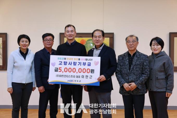 [´ëÇѱâÀÚÇùȸ Áøµµ±ºÁöȸ ¹Ú¿ëÁØ ±âÀÚ] À̸¸±Ù ¢ß¾ÆÆ®Àδõ½ºÆ®¸® ´ëÇ¥°¡ ÃÖ±Ù Áøµµ±º¿¡ °íÇâ»ç¶û±âºÎ±Ý 500¸¸ ¿øÀ» ±âºÎÇϸç, Áøµµ¿¡ ´ëÇÑ ±íÀº ¾ÖÁ¤À» ÀüÇß´Ù.
