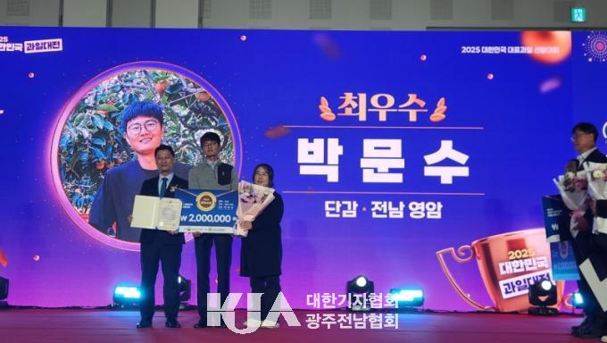 û³â ³ó¾÷ÀÎ ¹Ú¹®¼ö ÀþÀº³óºÎ³ó¿ø ´ëÇ¥ÀÇ ´Ü°¨ ¡®°¨Ç³¡¯ÀÌ ³ó¸²Ãà»ê½ÄǰºÎ ÁÖÃÖ, Çѱ¹°ú¼ö³óÇù¿¬ÇÕȸ¿Í »ê¸²Ã» ÁÖ°üÀ¸·Î 27ÀÏ ´ëÀüÄÁº¥¼Ç¼¾ÅÍ¿¡¼ ¿¸° ¡®2025 ´ëÇѹα¹ ´ëÇ¥°úÀÏ ¼±¹ß´ëȸ¡¯¿¡¼ ÃÖ¿ì¼ö»óÀ» ¹ÞÀº °Í.