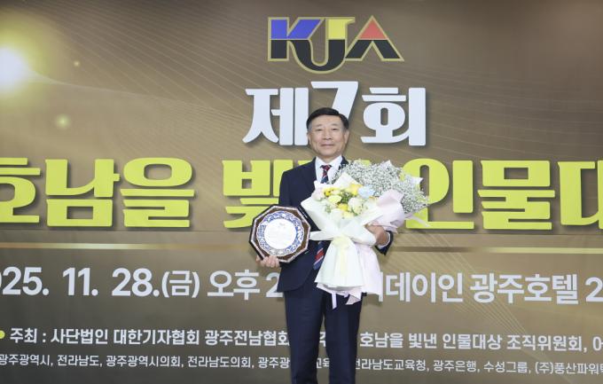 [´ëÇѱâÀÚÇùȸ ±¤ÁÖÀü³²Çùȸ ÀÓÀ±Áø ±âÀÚ] ¹Úâ½Ä ¸ñÆ÷¹®È¿øÀåÀÌ 11¿ù 28ÀÏ(±Ý) ±¤ÁÖ ¼±¸ Ȧ¸®µ¥ÀÌ ÀÎ ±¤ÁÖÈ£ÅÚ¿¡¼ ¿¸° »ç´Ü¹ýÀÎ ´ëÇѱâÀÚÇùȸ ±¤ÁÖ¡¤Àü³²Çùȸ ÁÖÃÖ ¡®2025³â Á¦7ȸ È£³²À» ºû³½ Àι°´ë»ó¡¯ ½Ã»ó½Ä¿¡¼