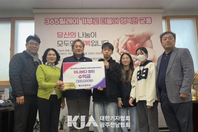 [´ëÇѱâÀÚÇùȸ °Áø±ºÁöȸ ±è¿µÀÏ ±âÀÚ] °Áø±º ±ºµ¿¸é¿¡ ÀÖ´Â °è»êÃʵîÇб³(±³Àå ÇãÁø)°¡ Áö³ 2ÀÏ ±ºµ¿¸é»ç¹«¼Ò(¸éÀå Â÷¿µ¼÷) ¸éÀå½Ç¿¡¼ Áö³´Þ 26ÀÏ¿¡ ¿¸° '¾Æ³ª¹Ù´Ù ÀåÅÍ' ¼öÀÍ±Ý Àü¾× 30¸¸¿øÀ» Àü±³Çлýȸ ¸íÀÇ·Î ±âºÎÇß´Ù. À̹ø ±âºÎ±ÝÀº »ç¶ûÀÇ ¿¸Å¸¦ ÅëÇØ Á¢¼öµÅ, ±ºµ¿¸é¿¡ °ÅÁÖÇÏ´Â ¾î·Á¿î ÀÌ¿ôµé¿¡°Ô Àü´ÞµÉ ¿¹Á¤ÀÌ´Ù.