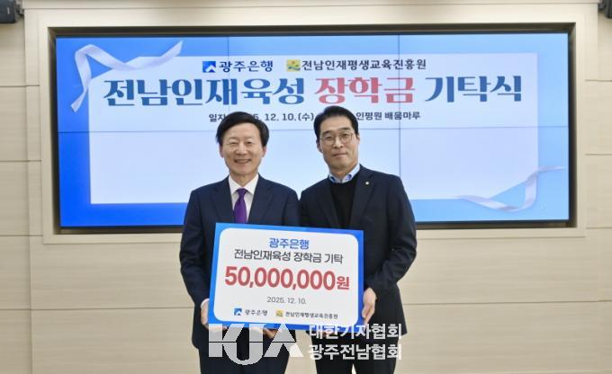[´ëÇѱâÀÚÇùȸ ±¤ÁÖÀü³²Çùȸ] Àü³²ÀÎÀçÆò»ý±³À°ÁøÈï¿øÀº ±¤ÁÖÀºÇàÀÌ Àü³²ÀÎÀçÀ°¼º ÀåÇÐ±Ý 5õ¸¸ ¿øÀ» Áö³ 10ÀÏ ±âÅ¹ÇØ Áö¿ª ¹Ì·¡ÀÎÀç ¾ç¼º¿¡ ÈûÀ» º¸ÅÉ´Ù°í ¹àÇû´Ù.