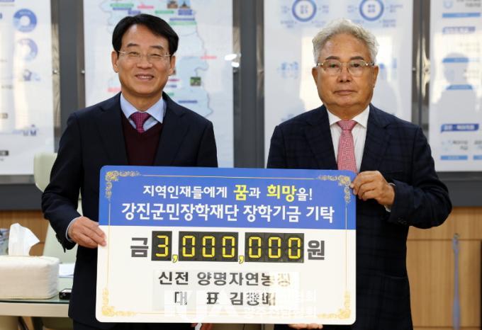 ½ÅÀü¸é¿¡ ÀÖ´Â ¾ç¸íÀÚ¿¬³óÀåÀÇ ±èÁ¤¹è ´ëÇ¥´Â 2016³âºÎÅÍ ²ÙÁØÈ÷ ÀåÇбÝÀ» ±âÅ¹ÇØ ÇöÀç±îÁö ÃÑ 2õ1¹é¸¸ ¿øÀ» ±âŹ Çß´Ù. ¾ç¸íÀÚ¿¬³óÀåÀº ¿À¸® »çÀ° ±â¼ú»Ó¸¸ ¾Æ´Ï¶ó Çлýµé°ú ±º¹ÎµéÀÇ º¹Áö µî¿¡µµ ½Å°æÀ» ¾²¸ç ´Ù¹æ¸éÀ¸·Î ³ë·ÂÇϰí ÀÖ´Ù. ±èÁ¤¹è ´ëÇ¥´Â ¡°Áö¿ª ÀÎÀçÀÇ ¼ºÀåÀÌ °ð Áö¿ªÀÇ ÈûÀÌ´Ù. ¹è¿òÀ» ÅëÇØ ¼ºÀåÇÑ ÀÎÀçµéÀÌ ´Ù½Ã Áö¿ªÀ» ºû³» ÁÖ±æ ¹Ù¶õ´Ù¡±°í ¸»Çß´Ù.
