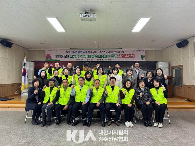 À̳¯ º¸°íȸ´Â ÇùÀÇü À§¿ø 12¸í°ú ¸¶À»º¹Áö ºÀ»ç´Ü 40¸íÀÌ Âü¼®ÇÑ °¡¿îµ¥ 2025³â ¼Ò¶ó¸é Áö¿ª»çȸº¸ÀåÇùÀÇü ¼º°ú º¸°í, ¸¶À»º¹Áö ºÀ»ç´Ü ¿î¿µ ¼º°ú º¸°í, º¹Áö»ç°¢Áö´ë ¹ß±¼ ¹× ¹Î°£ Çù·Â ¿ì¼ö»ç·Ê º¸°í ¼øÀ¸·Î ÁøÇàµÆÀ¸¸ç ±×µ¿¾ÈÀÇ ³ë°í¸¦ ¼·Î °Ý·ÁÇÏ´Â ÀÚ¸®°¡ ÇÔ²² ¸¶·ÃµÆ´Ù.