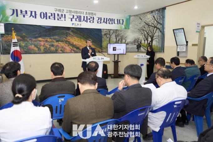 Çà»ç¿¡ Âü¼®ÇÑ ±è±¤Å ±¸·ÊÀåÇÐȸ ÀÌ»çÀåÀº ±âºÎÀÚ¸¦ ´ëÇ¥ÇØ ¡°±âºÎÀÚµéÀÇ ¼ÒÁßÇÑ ¸¶À½ÀÌ ¸ðÀÎ °íÇâ»ç¶û±âºÎ±ÝÀ¸·Î Áö¿ªÁÖ¹ÎÀ» À§ÇÑ ±ÍÁßÇÑ ÀÇ·áÀåºñ°¡ Áö¿øµÇ¾î ¶æ ±í´Ù¡±¸ç ¡°¾ÕÀ¸·Îµµ °íÇâ»ç¶û±âºÎ°¡ Áö¼ÓÀûÀ¸·Î À̾îÁö±æ ¹Ù¶õ´Ù¡±°í ¸»Çß´Ù.
