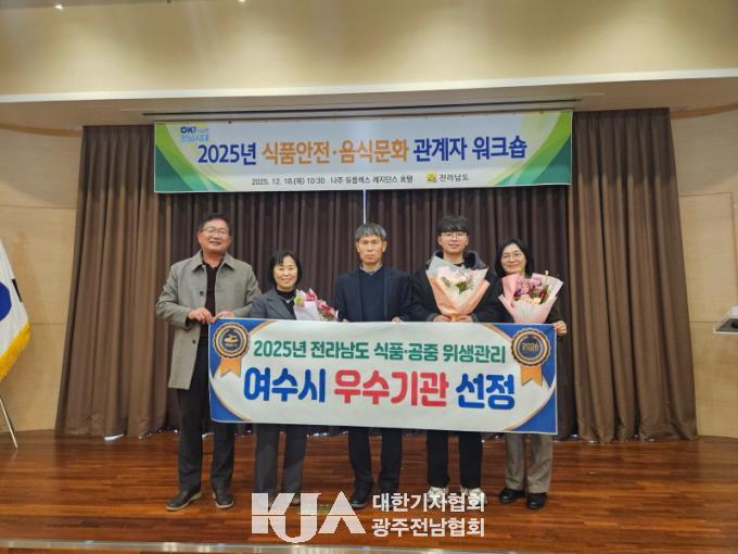 [´ëÇѱâÀÚÇùȸ ¿©¼ö½ÃÁöȸ] ¿©¼ö½Ã´Â Àü¶ó³²µµ°¡ ÁÖ°üÇÑ 2025³â ½Äǰ¡¤°øÁß À§»ý¾÷¹« Æò°¡¿¡¼ ¿ì¼ö±â°üÀ¸·Î ¼±Á¤µÆ´Ù°í ¹àÇû´Ù.