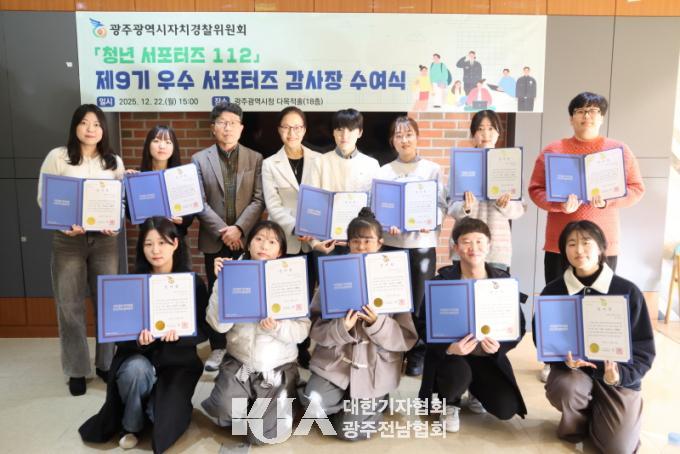 | ±¤ÁÖÀÚÄ¡°æÂûÀ§¿øÈ¸, Á¦9±â û³â¼Æ÷ÅÍÁî112 ¿ì¼öȰµ¿ ½Ã»ó½Ä °³ÃÖ Ä¡¾È È«º¸¡¤¹üÁË ¿¹¹æ ±â¿©ÇÑ Ã»³â 13¸í¿¡ °¨»çÀå ¼ö¿© |