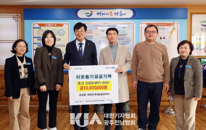 [´ëÇѱâÀÚÇùȸ ÀåÈﱺÁöȸ Á¤¾ç¼® ±âÀÚ] ÀåÈﱺ ±è¼ºÈÆ À̺ñÀÎÈİú(±è¼ºÈÆ ¿øÀå)¿Í Á߾Ӿ౹(¹ÚÁ¤¹Î ¾à»ç)ÀÌ 14ÀÏ Àú¼Òµæ°¡Á¤ Áß¡¤°íµîÇб³ ½ÅÀÔ»ýÀ» À§ÇØ 1,000¸¸ ¿øÀ» ±âºÎÇß´Ù.