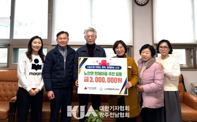 [´ëÇѱâÀÚÇùȸ ³ªÁÖ½ÃÁöȸ ±èÁ¾±Ù ±âÀÚ] ³ªÁֽà ³ë¾È¸é Çö¾Ö¸¶À» ÁֹΠÀϵ¿(´ëÇ¥ ¾çÂù±Ô)Àº Áö³­ 19ÀÏ ³ë¾È¸é ÇàÁ¤º¹Áö¼¾Å͸¦ ¹æ¹®ÇØ Áö¿ªÀÇ ¾î·Á¿î ÀÌ¿ôÀ» µ½±â À§ÇÑ ¼º±Ý 300¸¸ ¿øÀ» ±âŹÇß´Ù.