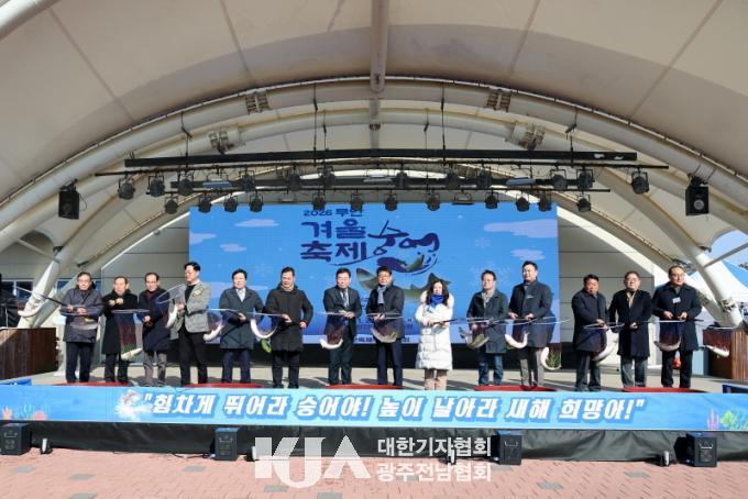 [´ëÇѱâÀÚÇùȸ ¹«¾È±ºÁöȸ ¹ÚÁ¶Çå ±âÀÚ] ¹«¾È±º(±º¼ö ±è»ê)ÀÇ °Ü¿ïÀ» ¶ß°Ì°Ô ´Þ±É´ø¡®2026 ¹«¾È°Ü¿ï¼þ¾îÃàÁ¦¡¯°¡ Áö³ 1¿ù 24ÀϺÎÅÍ 25ÀϱîÁö ÇØÁ¦¸é ¾ç°£´Ù¸® ¼ö»ê½ÃÀå ÀÏ¿ø¿¡¼ Å« È£ÀÀ ¼Ó¿¡ ¸·À» ³»·È´Ù.