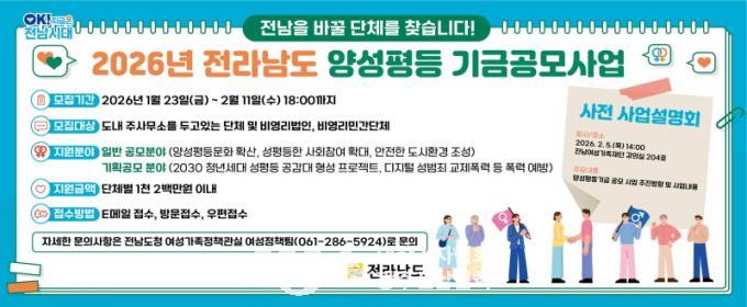 | Àü¶ó³²µµ, ¡®2026 ¾ç¼ºÆòµî±â±Ý °ø¸ð»ç¾÷¡¯ Á¢¼ö 2¾ï¿ø ±Ô¸ð È®´ë 2030û³â¡¤µðÁöÅÐ ¼º¹üÁË ¿¹¹æ µî ºÐ¾ß ½Å¼³ |