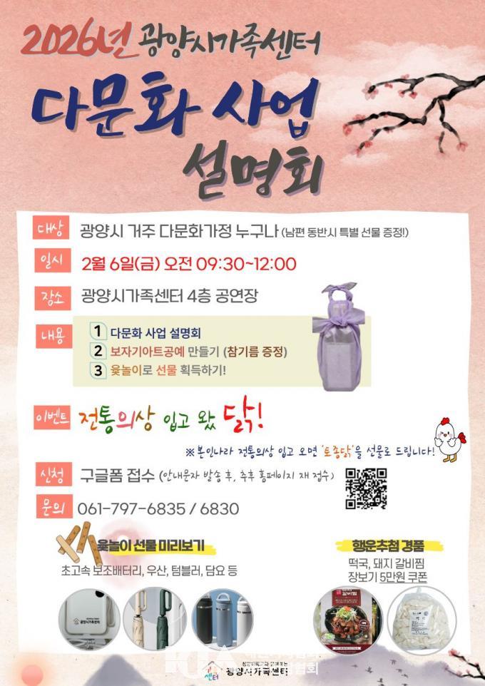 | ±¤¾ç½Ã°¡Á·¼¾ÅÍ, 2026³â ´Ù¹®È»ç¾÷ ¼³¸íȸ °³ÃÖ ´Ù¹®È°¡Á· ´ë»ó ¿¬°£ »ç¾÷ ¾È³» ¹× Âü¿© µ¶·Á |
