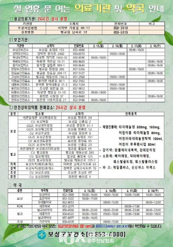 º¸°Ç ºÐ¾ß¿¡¼´Â º¸¼º¾Æ»êº´¿ø°ú »ïÈ£º´¿ø ÀÀ±Þ½Ç 24½Ã°£ ¿î¿µ, ´çÁ÷ÀÇ·á±â°ü ¹× ÈÞÀÏ ¾à±¹ ÁöÁ¤ ¿î¿µ, º¸°ÇÁö¼Ò¡¤º¸°ÇÁø·á¼Ò ÁÖ°£ Áø·á ü°è¸¦ À¯ÁöÇÑ´Ù. °¨¿°º´ ´ëÀÀÀ» À§ÇØ 24½Ã°£ ºñ»ó ¹æ¿ª ¿¬¶ô ü°èµµ °¡µ¿ÇÑ´Ù.