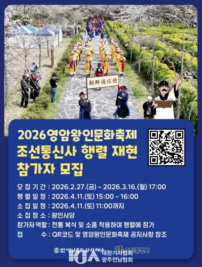 ¿µ¾Ï¹®È°ü±¤Àç´ÜÀº Á¶¼±Åë½Å»ç Çà·Ä¿¡ Âü¿©ÇÒ Âü°¡ÀÚ¸¦ ¸ðÁýÇϰí ÀÖ´Ù. ÀÚ¼¼ÇÑ »çÇ×Àº ¿µ¾Ï¿ÕÀι®ÈÃàÁ¦ °ø½Ä ´©¸®Áý(www.¿µ¾Ï¿ÕÀι®ÈÃàÁ¦.kr)¿¡¼ È®ÀÎÇÒ ¼ö ÀÖÀ¸¸ç, ¹®ÀÇ´Â ¿µ¾Ï¹®È°ü±¤Àç´Ü(¢Ï 061-471-9092)À¸·Î ÇÏ¸é µÈ´Ù.