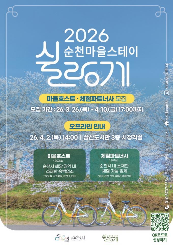 ½ÅûÀº À̸ÞÀÏ ¹× QR Á¢¼ö¸¦ ÅëÇØ °¡´ÉÇϸç, ÀÚ¼¼ÇÑ »çÇ×Àº ³×À̹ö¿¡¼ ¡®¼øÃµ¸¶À»½ºÅ×ÀÌ ½¯¶û°Ô(www.shilange.kr)¡¯ °Ë»öÀ» ÅëÇØ È®ÀÎÇÒ ¼ö ÀÖ´Ù.