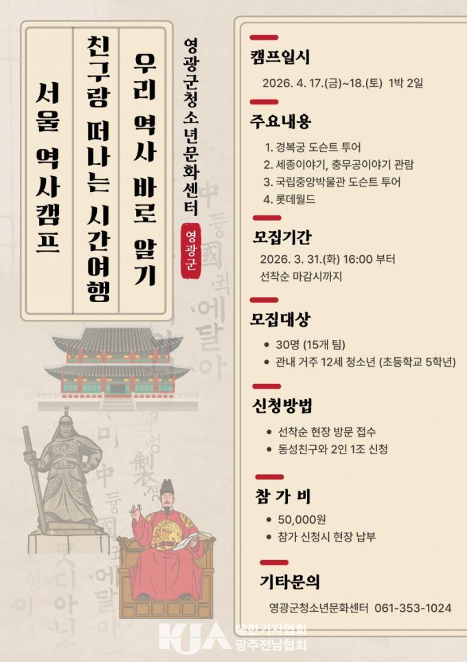 | ¿µ±¤±ºÃ»¼Ò³â¹®È¼¾ÅÍ, ¡®Ä£±¸¶û ¶°³ª´Â ¼¿ï ¿ª»çÄ·ÇÁ¡¯ Âü°¡ÀÚ ¸ðÁý ¡°±³°ú¼ ¹Û ¿ª»ç ¼ÓÀ¸·Î!¡± |