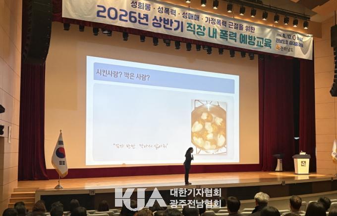 [´ëÇѱâÀÚÇùȸ ±¤ÁÖÀü³²Çùȸ] Àü¶ó³²µµ´Â 13ÀÏ µµÃ» ±è´ëÁß°´ç¿¡¼ Àü Á÷¿øÀ» ´ë»óÀ¸·Î Á÷Àå ³» Æø·Â ¿¹¹æ±³À°À» ÇØ µðÁöÅмº¹üÁË¿Í ½ºÅäÅ· µî ´ëÀÀ ¿ª·®À» ³ô¿´´Ù.