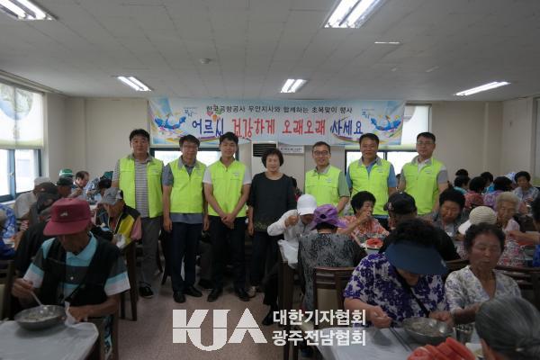Çѱ¹°øÇ×°ø»ç(»çÀå ¼ºÀÏȯ) ¹«¾ÈÁö»ç´Â Áö³ 7¿ù 12ÀÏ ¹«¾È±º ³ëÀκ¹Áöȸ°ü ³» °æ·Î½Ä´ç¿¡¼ Áö¿ª ¾î¸£½Å 150¿©¸íÀ» ¸ð½Ã°í Á¶ÃÍÇÑ Ãʺ¹ ¸ÂÀÌ ³ª´® Çà»ç¸¦ °¡Á³´Ù.
