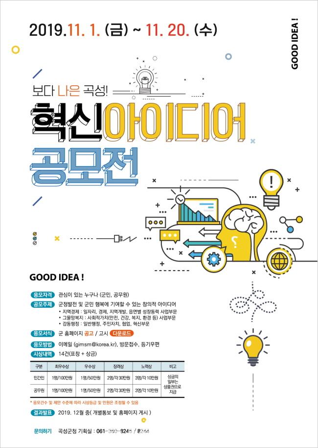 °î¼º±º(±º¼ö À¯±Ù±â)ÀÌ 11¿ù 1ÀϺÎÅÍ 20ÀϱîÁö¡®º¸´Ù ³ªÀº °î¼º! Çõ½Å ¾ÆÀ̵ð¾î °ø¸ðÀü¡¯À» ¿°í Áö¿ª ¹ßÀüÀ» À§ÇÑ Ã¢ÀÇÀûÀÎ ¾ÆÀ̵ð¾î¸¦ ¸ðÀº´Ù.