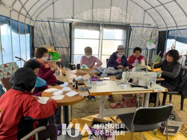 ¿À°î¸é Ä¡À¯³ó¾÷¿¬±¸È¸¼Ò¼Ó ȸ¿ø 7¸íÀº Äڷγª19ÀÇ À§Çè ¼Ó¿¡¼ Áö¿ª¹ÎµéÀÌ ¸¶½ºÅ©¸¦ ±¸Çϱâ À§ÇØ ¾Ö¾²´Â ¸ð½ÀÀÌ ¾ÈŸ±î¿ü´Ù. ±×·¡¼ Á÷Á¢ ³ª¼¹´Ù. 7¸íÀÌ ÀDZâÅõÇÕÇØ Á÷Á¢ ¸¶½ºÅ©¸¦ ¸¸µé±â·Î ÇÑ °ÍÀÌ´Ù.
