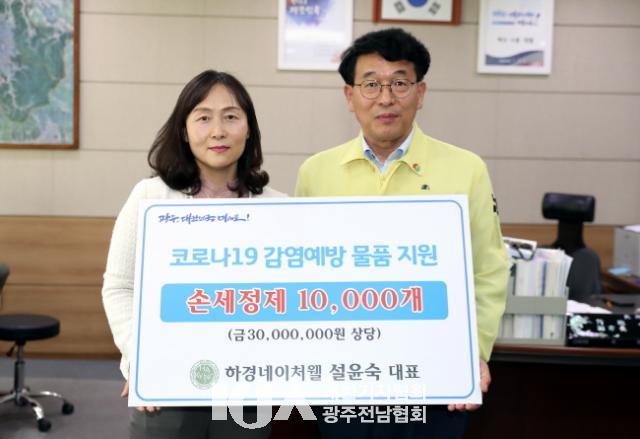 ±¤ÁÖ ºÏ±¸ ¼ÒÀçÀÇ ÈÀåǰ Á¦Á¶ ȸ»ç Çϰæ³×ÀÌóÀ£Àº °í·ÁÀθ¶À»°ú ¿Ü±¹Àγ뵿ÀÚ¸¦ À§ÇØ Äڷγª19 °¨¿° ¿¹¹æÀ» À§ÇÑ ¼Õ¼¼Á¤Á¦ 1¸¸°³¸¦ ±âºÎÇß´Ù.