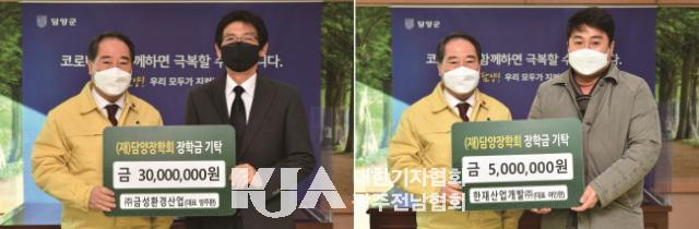 [´ëÇѱâÀÚÇùȸ ´ã¾ç±ºÁöȸ ¼ÛÁøÇö ±âÀÚ] (Àç)´ã¾çÀåÇÐȸ´Â ÃÖ±Ù ¢ß±Ý¼ºÈ¯°æ»ê¾÷(´ëÇ¥ ¹æÁÖȯ)¿¡¼ 3,000¸¸¿ø, ÇÑÀç»ê¾÷°³¹ß¢ß(´ëÇ¥ ¿©ÀÎÇö)¿¡¼ 500¸¸¿øÀÇ ÀåÇбÝÀ» ÄèôÇß´Ù°í ¹àÇû´Ù.