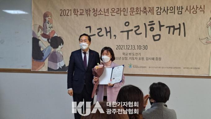 ´õºÒ¾î Áö³ 13ÀÏ ±¤ÁÖ±¤¿ª½ÃÇб³¹Ûû¼Ò³âÁö¿ø¼¾ÅÍ¿¡¼ ÁÖ°üÇÑ Á¦5ȸ Çб³¹ÛµµÀü±â °ø¸ðÀü¿¡¼ Àº»ó(±¤ÁÖ±¤¿ª½ÃÀÇȸ ÀÇÀå»ó) ¼ö»óÀÇ ¿µ¿¹¸¦ ¾È¾Ò´Ù.