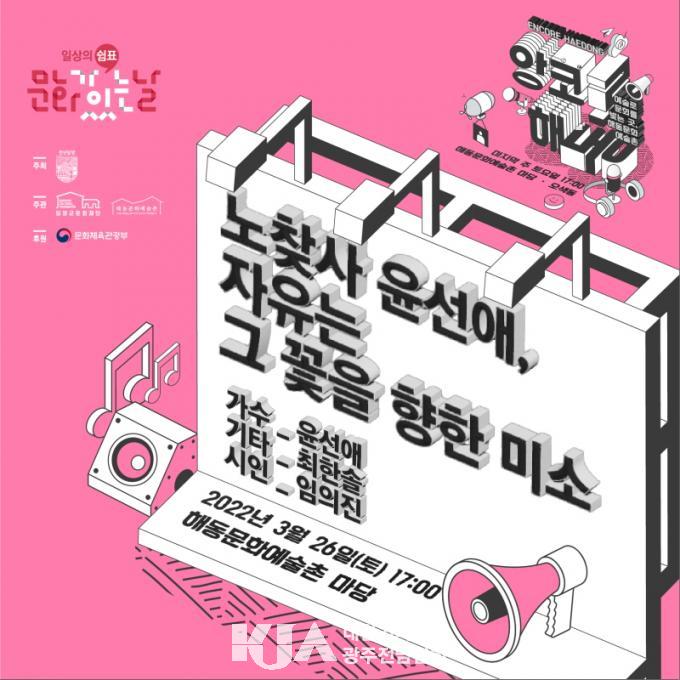 ¾ÓÄÚ¸£ ÇØµ¿¿¡¼ À̹ø¿¡ ÁغñÇÑ °ø¿¬Àº <³ëã»ç À±¼±¾Ö, ÀÚÀ¯´Â ±× ²ÉÀ» ÇâÇÑ ¹Ì¼Ò>´Ù. ¿À´Â 26ÀÏ ¿ÀÈÄ 5½Ã ÇØµ¿¹®È¿¹¼úÃÌ ¸¶´ç¿¡¼ ¿¸®¸ç °¡¼ö À±¼±¾Ö, ±âŸ¸®½ºÆ® ÃÖÇÑ¼Ö ±×¸®°í ½ÃÀÎ ÀÓÀÇÁøÀÌ ÇÔ²² ¹«´ë¸¦ ÁغñÇÑ´Ù.