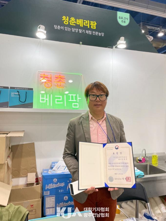 [´ëÇѱâÀÚÇùȸ ´ã¾ç±ºÁöȸ ¼ÛÁøÇö ±âÀÚ] ´ã¾ç±º ûÃả¸®ÆÊ ÀÓµ¿¸¸ ´ëÇ¥°¡ ³óÃÌÁøÈïû¿¡¼ ÁÖ°üÇÏ´Â ¡®2022 °¼Ò³ó ´ëÀü¡¯ ³ó°¡°æ¿µ°³¼± ºÐ¾ß¿¡¼ ³ó¸²Ãà»ê½ÄǰºÎ Àå°ü»óÀ» ¼ö»óÇß´Ù.