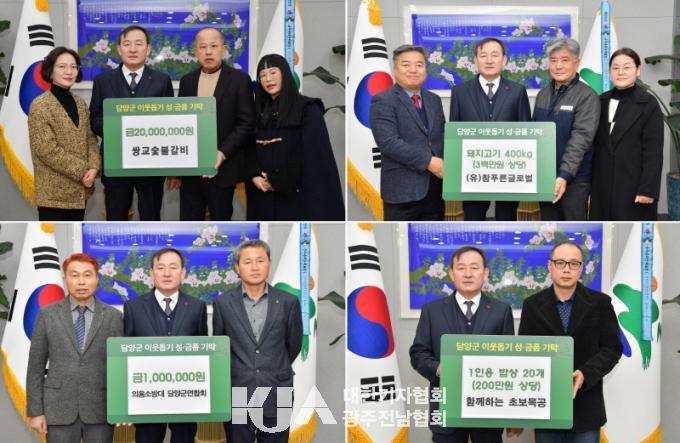 13ÀÏ¿¡´Â ½Ö±³½¡ºÒ°¥ºñ(´ëÇ¥ ±èâȸ) Çö±Ý 2,000¸¸¿ø, ³ó¾÷ȸ»ç¹ýÀÎ (À¯)ÂüǪ¸¥±Û·Î¹ú(´ëÇ¥ ¼Û¼®Âù) 300¸¸¿ø »ó´ç µÅÁö°í±â 400kg, ÇÔ²²ÇÏ´Â Ãʺ¸¸ñ°ø ¹êµå(Àü³²±¤ÁÖÁöºÎÀå Á¤Ã¢¿ì) 1ÀÎ¿ë ¹ä»ó 20°³(200¸¸¿ø »ó´ç) ÀÇ¿ë¼Ò¹æ´ë ´ã¾ç±º¿¬ÇÕȸ(¿¬ÇÕȸÀå ¹èµ¿°ü) Çö±Ý 100¸¸¿ø µî ¸¹Àº °÷¿¡¼ µû¶æÇÑ ¸¶À½À» ÀüÇß´Ù.