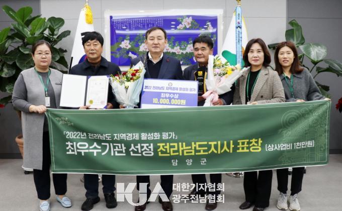 [´ëÇѱâÀÚÇùȸ ´ã¾ç±ºÁöȸ ¼ÛÁøÇö ±âÀÚ] ´ã¾ç±º(±º¼ö À̺´³ë)ÀÌ Àü¶ó³²µµÃ»¿¡¼ ¿¸° ¡®2022³â Àü¶ó³²µµ ÀÏÀÚ¸®ÇѸ¶´ç¡¯¿¡¼ Áö¿ª°æÁ¦ Ȱ¼ºÈ Æò°¡ ÃÖ¿ì¼ö ±â°ü¿¡ ¼±Á¤µÅ ±â°üǥâ, ½Ã»ó±Ý 1õ¸¸ ¿øÀ» ¼ö»óÇß´Ù.