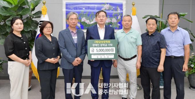 [´ëÇѱâÀÚÇùȸ ´ã¾ç±ºÁöȸ] ´ã¾ç±º(±º¼ö À̺´³ë)Àº ÃÊ·Ï¿ì»ê¾î¸°ÀÌÀç´Ü Àü³²ÈÄ¿øÈ¸ ´ã¾çÁöȸ(ȸÀå ÀÌÈ«¼®)¿¡¼ ´ã¾ç±º¿¡ Àå¾ÖÀÎ ÀåÇÐ±Ý 5¹é¸¸ ¿øÀ» Àü´ÞÇß´Ù°í 31ÀÏ ¹àÇû´Ù.