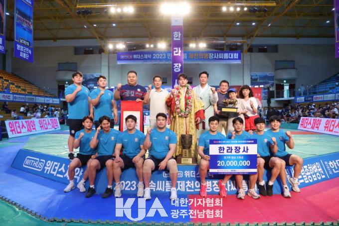 ¸ÕÀú, ´ëȸ 5ÀÏ Â÷ 105kg ÀÌÇÏ ÇѶóÀå»ç °áÁ¤Àü¿¡¼ ¿µ¾Ï±º¹Î¼Ó¾¾¸§´ÜÀÇ ½ÅÈï °ÀÚ Â÷¹Î¼ö Àå»ç´Â, ù Àå»ç¿¡ µµÀüÇÏ´Â Á¦ÁÖµµÃ» ±è½ÂÇö ¼±¼ö¿Í ¸¸³µ´Ù. ÀÌ ½ÂºÎ¿¡¼ ¡®¸Ó½½(±ÙÀ°) ´ëÀ塯À¸·Î ºÒ¸®´Â Â÷¹Î¼ö Àå»ç´Â, ´Ü ÇÑ ÆÇµµ ³»ÁÖÁö ¾Ê´Â ¾ÐµµÀû ±â·® Â÷ÀÌ·Î ½Â¸®¸¦ µû³»¸ç ÇѶó±ÞÀÇ ¡®³Ñ»çº®¡¯ÀÓÀ» ÀÔÁõÇß´Ù.