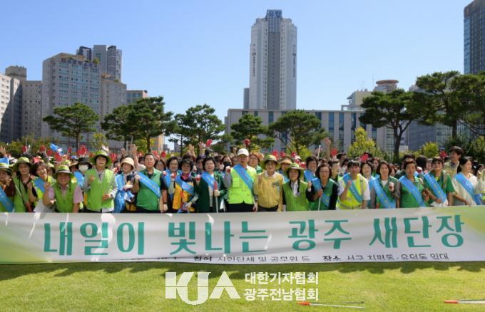 [´ëÇѱâÀÚÇùȸ ±¤ÁÖÀü³²Çùȸ] ±¤ÁÖ±¤¿ª½Ã(½ÃÀå °±âÁ¤)´Â 23ÀÏ »ó¹«Áö±¸ ÀÏ¿ø¿¡¼ ½Ã¹Î´Üü, ÀÚ¿øºÀ»çÀÚ, °ø¹«¿ø µî 450¿©¸íÀÌ Âü¿©ÇÑ °¡¿îµ¥ ½Ã°¡Áö »ýȰ¾²·¹±â¿Í ´ã¹è²ÇÃÊ µîÀ» ¼ö°ÅÇÏ´Â ¡®ºû³ª´Â ±¤ÁÖ »õ´ÜÀ塯 û°á Ȱµ¿À» ½Ç½ÃÇß´Ù.